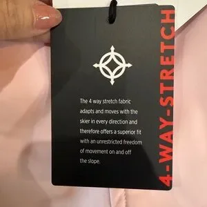 🌸 beautiful light pink! NWT. Brushed fleece reverse side. Insulated four-way stretch. Water repellent and breathable. Logo embossed snaps and gusseted ankle zips for easy on-off over boots