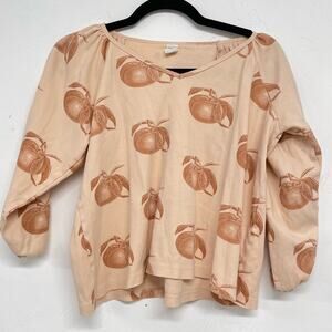 Kate Quinn Orange Peach Print 3/4 Sleeve Blouse Womens XS Boho Casual Shirt Top
