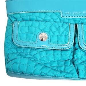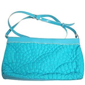 Vera Bradley Aqua Quilted w/Patent Leather Trim Strap Crossbody Bag 7.5 x 11
