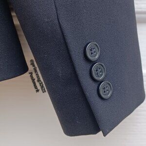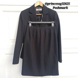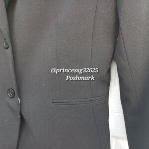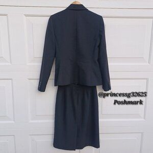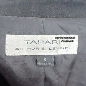 Elevate your style with this classic elegant women's black suit blazer featuring stylish button details with button closure by Tahari Arthur S. Levine. The chic black skirt bottom featuring a zipper detail is perfect for formal occasions. Its sleek design offers a timeless look that pairs well with any top. This versatile piece adds a touch of sophistication & makes a must-have addition to your wardrobe.