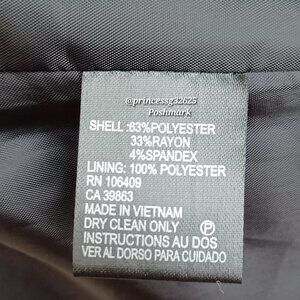 Material - Shell 63% Polyester, 33% Rayon, 4% Spandex
