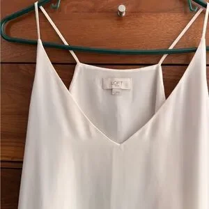 LOFT Women's White Chiffon Camisole White V-neck Size L