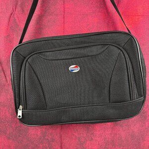 AMERICAN TOURISTER CARRY ON SHOULDER DUFFLE BAG ADJUSTABLE STRAP, BLACK, ZIPPER