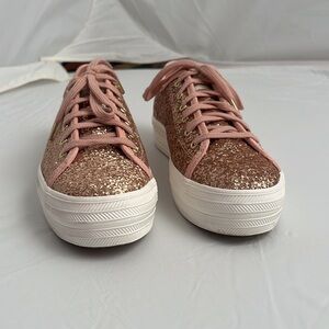 Keds x Kate Spade New York Triple Kick rose gold glitter platform sneakers. Tonal shoe laces. Excellent condition. Smoke free home