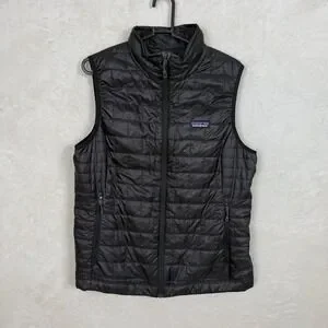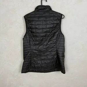 Sleek black quilted vest. Lightweight and warm. Perfect for layering.