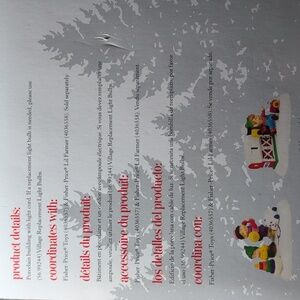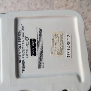 DEPARTMENT56's Fisher Price Fun Factory is a rare/discontinued piece from the North Pole Village. This rare piece depicts the Fisher Price Toy/Fun Factory in a snowy scene that illuminates when you tun on the light that is inside the piece. The collectible "North Pole Village" has many pieces that create a festive holiday town that is a display that makes the Christmas holidays even more magical. This piece is in very good condition and has the original box! See all pictures for details and accuracy! Measurements etc. are:Height= "9 1/2; Style#is 4036546;Piece Code BX484;Introduction date was 2014 and Retirement date 2016!