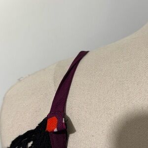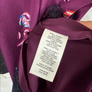 Plum purple with floral print and navy blue lace trim 100% Silk Shell