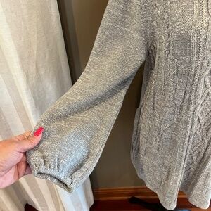 Style & Co. Gray & White Turtleneck Chunky Knit Tunic Sweater Bishop Sleeve, Size XL