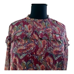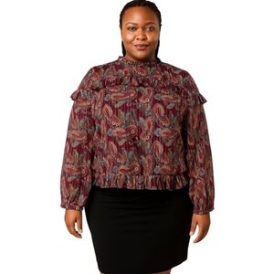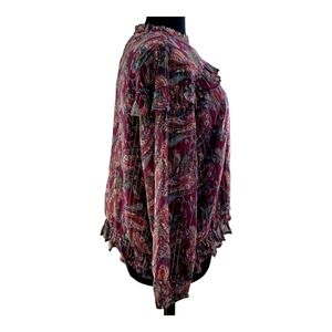 * New Cato Women's Plus Sheer Paisley Ruffle Gold Purple Dress Blouse Top 22/24W