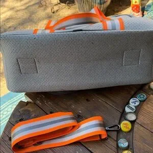 Color: Gray bag with orange and silver stripe