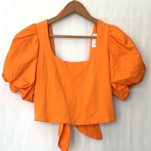 Anthropologie Orange Puff Sleeve Crop Top with tie back