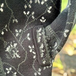 Indutexsa Womens Thick Knit Charcoal Gray Floral Jacket
