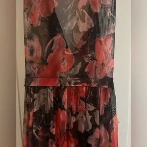 NWT Free People Intimately Step Out Midi Dress. Sheer flowy dress with red and black floral pattern.