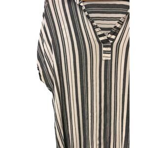 Jane + Delancey Woman 1X Gray/White Striped Short Sleeve Blouse