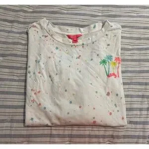 Lilly Pulitzer Sheridan Palm Tree Paint Splatter Crewneck Sweatshirt Top Size XL - 100% Cotton