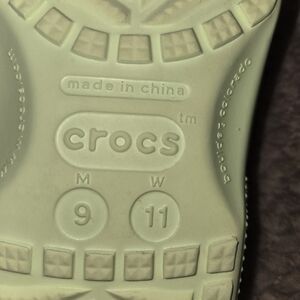Light Green Crocs with Gibbitz – Size 9 for Men size 11 for women.