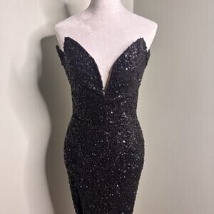 Up for Sale: Ashley Lauren Black Sequin Mermaid Gown Size 00 Off-Shoulder Sweetheart Formal Dress