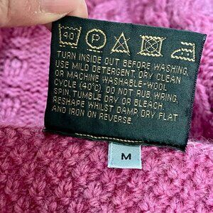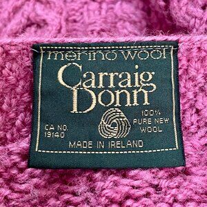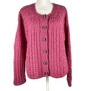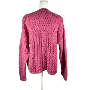 Carraig Donn Merino Wool Cardigan Pink Cable Knit • Preppy Classic Ireland • M