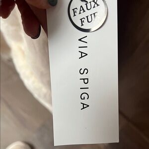 VIA SPIGA Ivory Hooded Quilted Faux Fur Vest