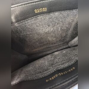 Gucci Horseshoe bag. Authentic Gucci convertible bag. Elegant black leather bag that can be converted to a crossbody, shoulder, or clutch bag. Perfect for any occasion. An off brand insert (to convert into a crossbody) and chain will be included, see pictures. In great pre-loved condition. The interior has minor peeling. It has an exterior pocket.