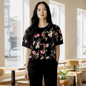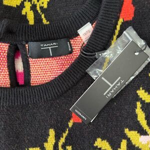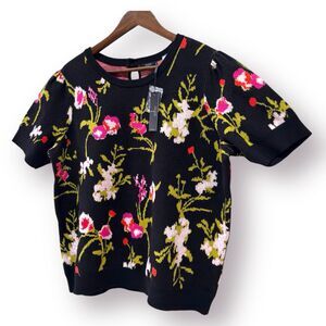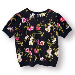 Tahari Pixel Floral Short Sleeve Sweater Blouse Size 1X Teacher Office Chic Art