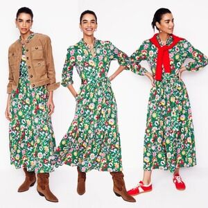 Boden Willow Floral Tiered Dress 6 Long Forest Grass Flourishing Vine