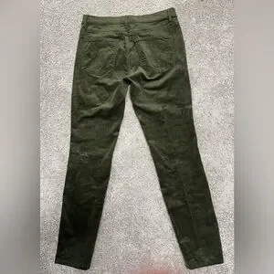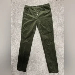 Chic forest green corduroy skinny pants. Button-up front. Ideal for everyday style.