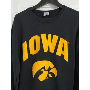 University of Iowa Hawkeyes black and yellow college crewneck sweatshirt. Men's size medium. Made by Jerzees.