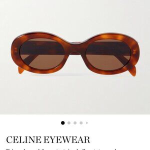 CELINE Eyewear's sunglasses in Tortoiseshell (called Havana on Celine's website.) Made in Italy. Modern oval-shaped frames. UVA and UVB protective lenses. Classic sunglasses with archival logo plaque - first introduced by the label's founder in 1973 - and fitted with tonal lenses. Comes with case, lens cloth, authenticity card and Celine box.