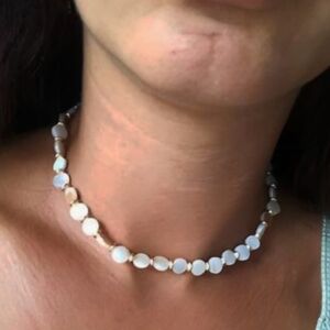 White tones mother of pearl beaded necklace; nwot
