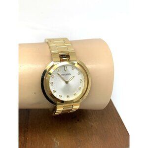 Bulova Women's Watch 97P125 Rubaiyat Quartz Silver Dial Diamond Gold Stainless Steel 35mm $695 (H11387)