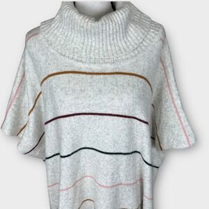LOFT Striped Cowl Neck Poncho Sweater Cape Pullover Knit XS/S Oversized Cozy