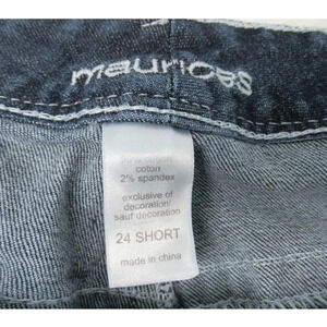 Nice pair of Maurices brand stretchy straight bootcut denim jeans. Medium wash color. Women's size 24 short. No signs of wear.