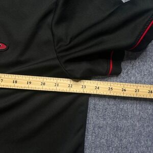 Please see measurements for size. Showcase your team spirit with this sharp Houston Rockets baseball jersey. Bold red piping accents the classic button-down silhouette, while the iconic Rockets logo proudly adorns the chest. The back boldly displays the team name and a prominent number, making it clear where your loyalty lies. Perfect for game days, casual outings, or representing your favorite team with sporty flair.