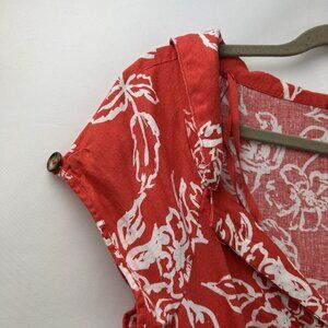 The Free People Women’s Size 10 A Thing Called Love Linen Blend Mini Dress in Red is a stylish and versatile piece perfect for various occasions like parties, casual outings, and even religious events. The dress features a flattering fit and flare style with a V-neckline, short cap sleeves, and a button closure. Made from a comfortable blend of rayon and linen, this dress is easy to wear and looks great year-round. The floral pattern and theme of love add a touch of whimsy to the overall design, making it a standout choice for any woman's wardrobe.