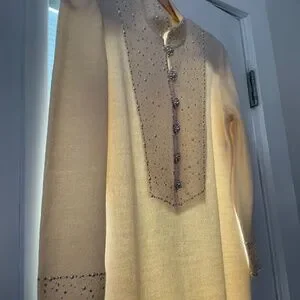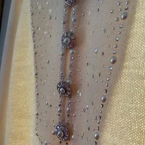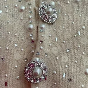 Covered with pearls, sequins, and rhinestones