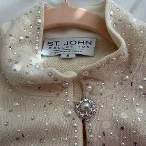GORGEOUS Vintage St. John Collection IVORY Pearls Sequins Rhinestone Dress 6