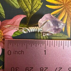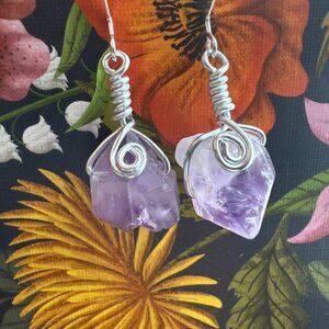 Handmade Earring Set Natural Purple Amethyst Freeform & Silver Wire Wrapping
