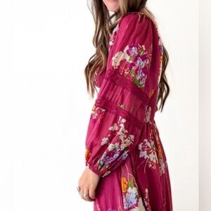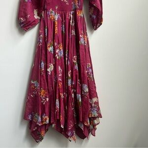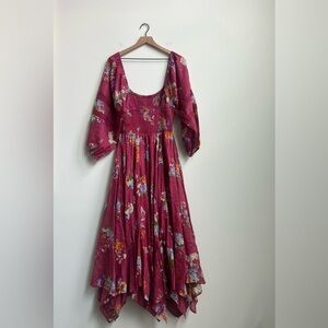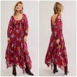 Free People Morning Glory Floral Maxi Dress Earth Red Smocked Handkerchief M