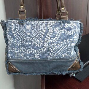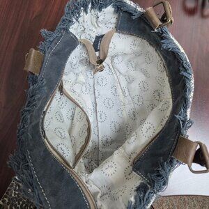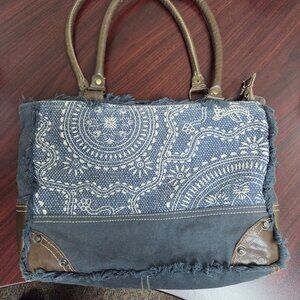 Myra Cloth Canvas Bag with Leather Detailing in Like New condition. Smoke free home. Barely used purse that I bought at Ben Franklin.
