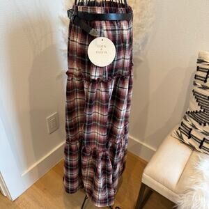 Get ready to turn heads with this gorgeous Eden & Olivia red plaid flannel maxi skirt! Brand new with tags, this skirt is perfect for adding a touch of cozy chic to your wardrobe. The belted waist creates a flattering silhouette, while the classic plaid pattern adds a timeless appeal.