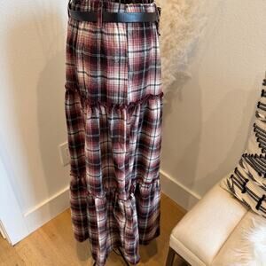 Eden & Olivia Red Plaid Flannel Belted Maxi Skirt NEW Medium