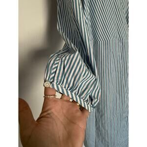 J CREW blue white cotton knee length lined wrap dress striped cotton poplin