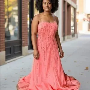 Alfred Angelo Coral Pink Beaded Princess Plus Size Prom Dress