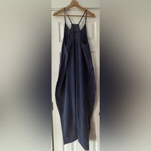 Stylish blue jumpsuit with a relaxed fit. Features deep pockets and a scoop neckline. Perfect for casual outings.