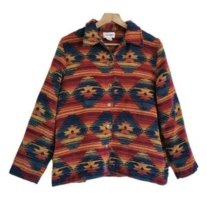 Vtg 90s Southwestern Aztec Jacket Boho Geometric Woven Button Up Boho Size 14