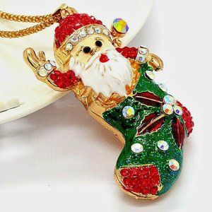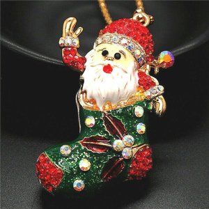 Jolly SANTA CLAUS Stocking Rhinestone Necklace