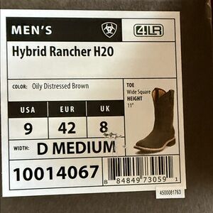 Ariat Hybrid Rancher H2O waterproof cowboy boots. Oil & slip resistant rubber outsoles. Excellent condition, worn only a handful of times.