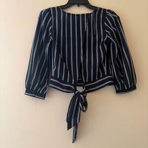 Japna Navy White Striped Back Tie Long Sleeve Blouse XS