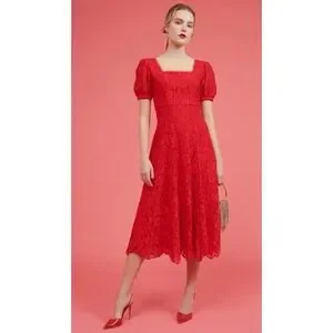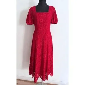 VGUC Rachel Parcell RP Red Lace Fit & Flare Cocktail Holidays Midi Dress XS